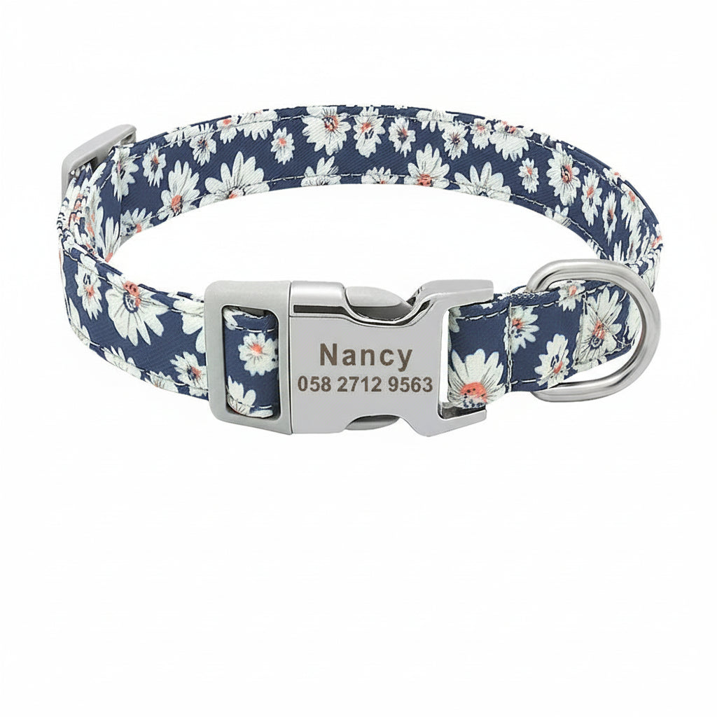 Keep your pet safe and stylish with this durable nylon dog collar featuring a personalized engraved ID tag. Adjustable design ensures a comfortable and secure fit for small, medium, and large dog breeds.